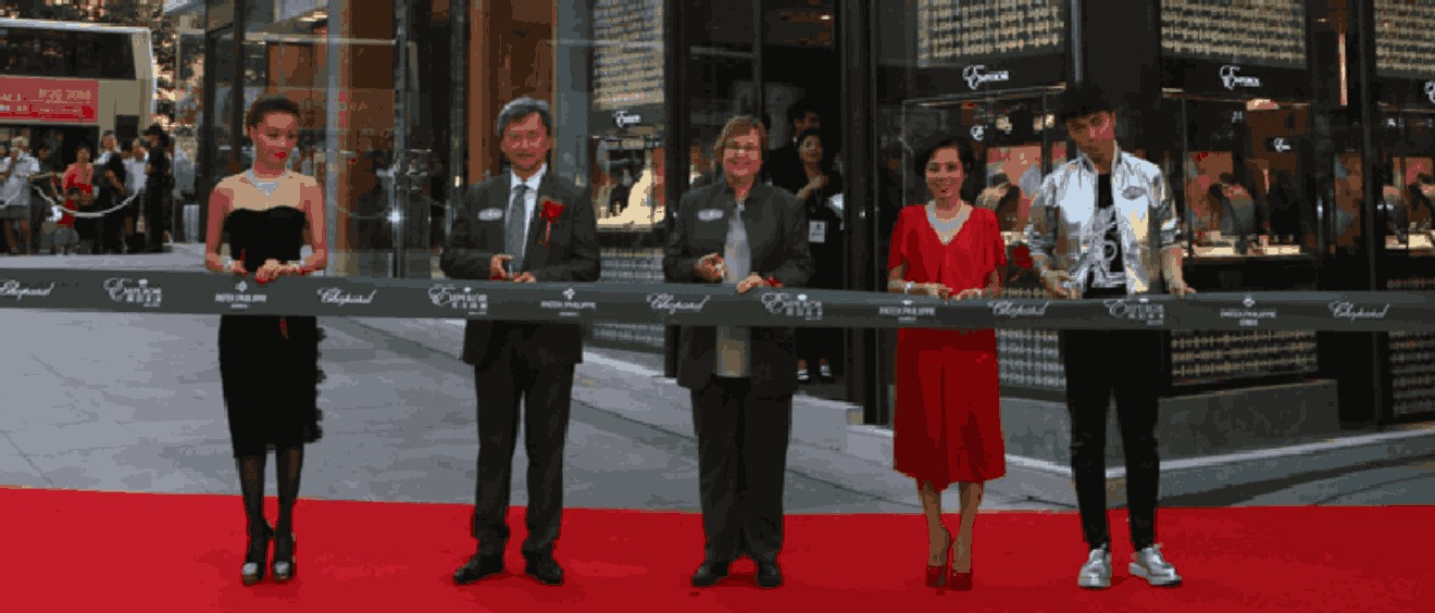 香港尖沙咀东企业广场旗舰店举行开幕典礼,瑞士驻香港特别行政区总领事 Mr. Hans Jakob Roth、美国网球公开赛冠军舒拉宝娃小姐、中联办副主任周俊明先生、香港知名歌手容祖儿小姐及俄罗斯联邦驻香港特别行政区总领事 Mr Andrey N.Smorodin 主持开幕礼剪彩仪式。