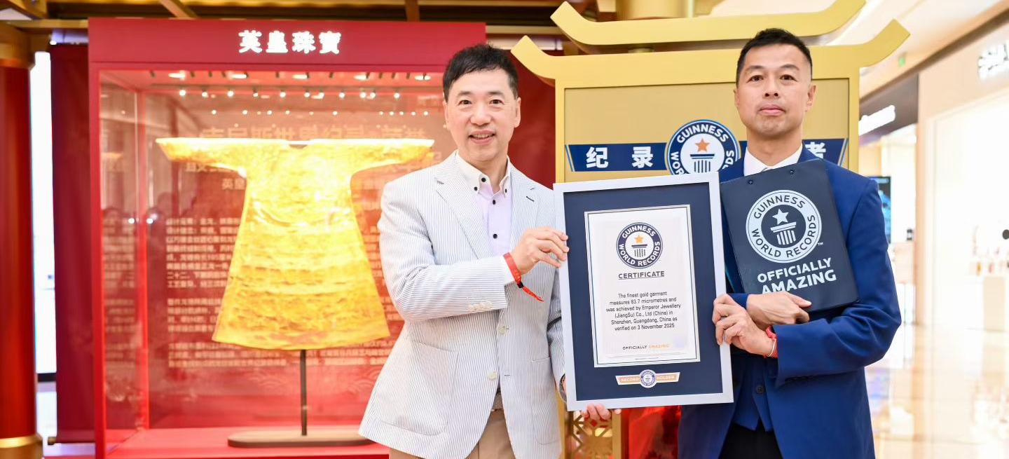 英皇珠宝「非遗京绣金丝刺绣龙袍」荣获#世界最细金线制成的龙纹华服 世界纪录官方认证!